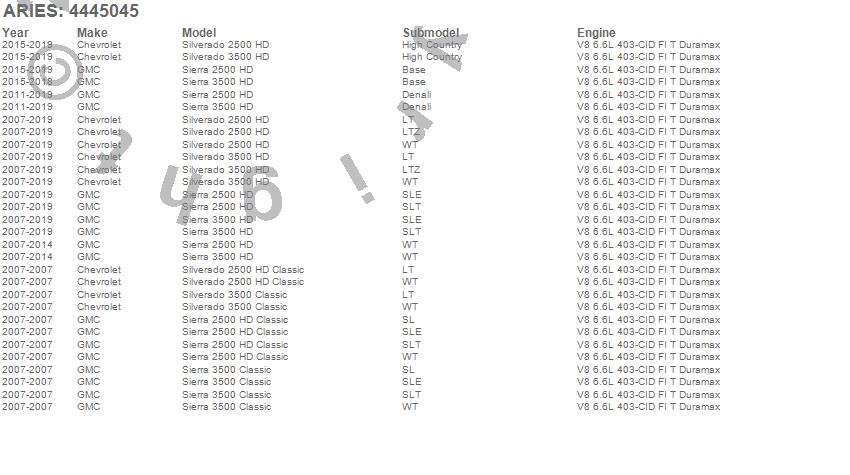 Brand: ARIESPart Number: 4445045Nerf/Step Bar Type: Incl. Side Bars And Mounting Brackets PN[B2891/4407] - Semi-Gloss Black Powder Coat AluminumUPC: 849055000357