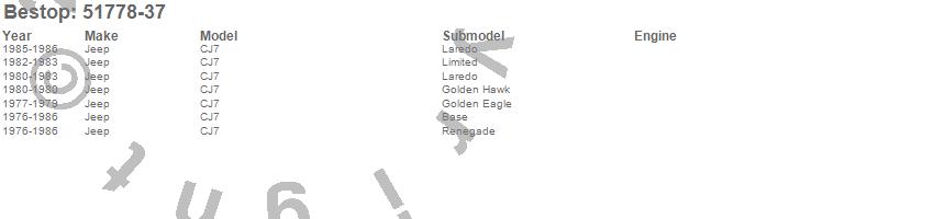 Brand: BestopPart Number: 51778-37Door Type: Spice - 2 pc. - Front - Fits PN[51598/51698]UPC: 077848129637