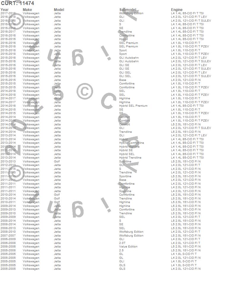Below is an abbreviated list of applications for the Class I 1.25 in. Receiver Hitch.Golf, Jetta, Volkswagen, 2018, 2017, 2016, 2015, 2014, 2013, 2012, 2011, 2010, 2009, 2008, 2007, 2006, 2005