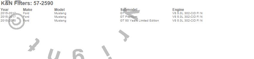Brand: K&N FiltersPart Number: 57-2590Air Intake Kit Type: Incl. Air Filter/Heat Shield/Tubing - Estimated Horsepower Gain 9.12 HP At 5342 RPMUPC: 024844360182