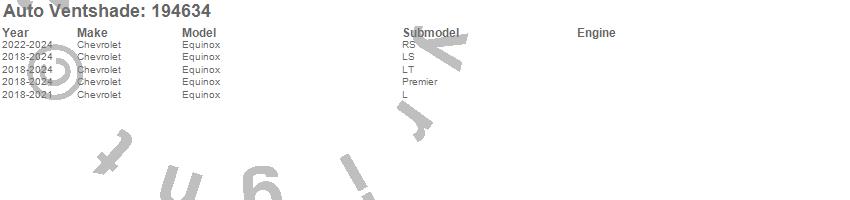 Below is an abbreviated list of applications for the Ventvisor In-Channel Deflector 4 pc..Equinox, Chevrolet, 2024, 2023, 2022, 2021, 2020, 2019, 2018