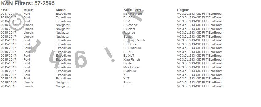 Below is an abbreviated list of applications for the 57i Series Induction Kit.Expedition, Navigator, Ford, Lincoln, 2016, 2015