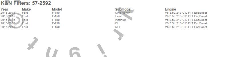 Below is an abbreviated list of applications for the 57i Series Induction Kit.F-150, Ford, 2015