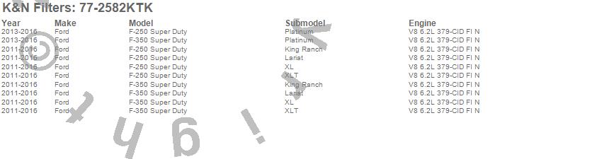 Below is an abbreviated list of applications for the Performance Induction Kit.F-250 Super Duty, F-350 Super Duty, Ford, 2016, 2015, 2014, 2013, 2012, 2011