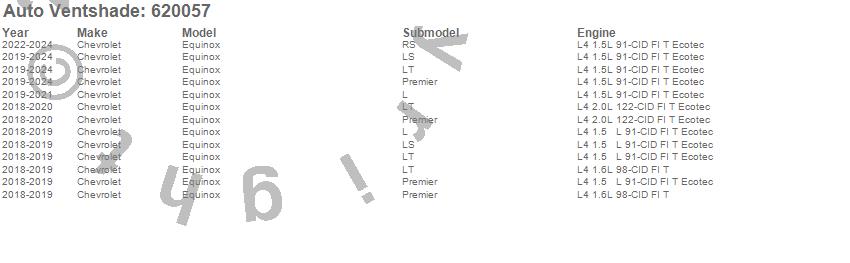 Below is an abbreviated list of applications for the Aeroskin Chrome Hood Protector.Equinox, Chevrolet, 2024, 2023, 2022, 2021, 2020, 2019, 2018