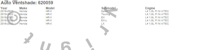 Below is an abbreviated list of applications for the Aeroskin Chrome Hood Protector.HR-V, Honda, 2022, 2021, 2020, 2019, 2018, 2017, 2016