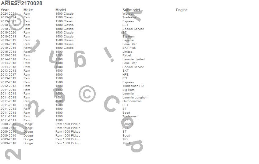 Below is an abbreviated list of applications for the Pro Series Grille Guard w/LED Light Bar.1500, 1500 Classic, Ram 1500, Dodge, Ram, 2024, 2023, 2022, 2021, 2020, 2019, 2018, 2017, 2016, 2015, 2014, 2013, 2012, 2011, 2010