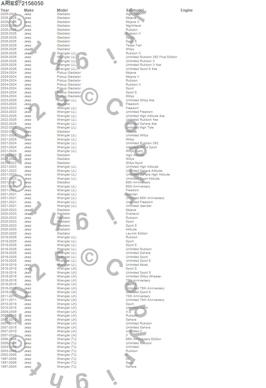 Below is an abbreviated list of applications for the TrailCrusher Front Bumper Brush Guard.Gladiator, Pickup Gladiator, Wrangler (JK), Wrangler (JL), Wrangler (TJ), Jeep, 2026, 2025, 2024, 2023, 2022, 2021, 2020, 2019, 2018, 2017, 2016, 2015, 2014, 2013