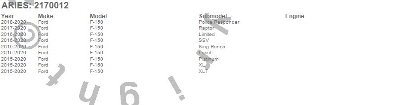 Below is an abbreviated list of applications for the Pro Series Grille Guard w/LED Light Bar.F-150, Ford, 2020, 2019, 2018, 2017, 2016, 2015