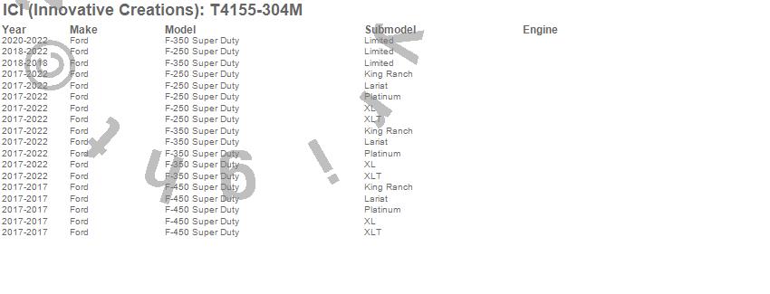 Brand: ICI (Innovative Creations)Part Number: T4155-304MRocker Panel Type: 4.5 in. Wide - 12 pc - . - Special Fit Install Body Line Down - w/o BSM - w/o FlaresUPC: 845426030039