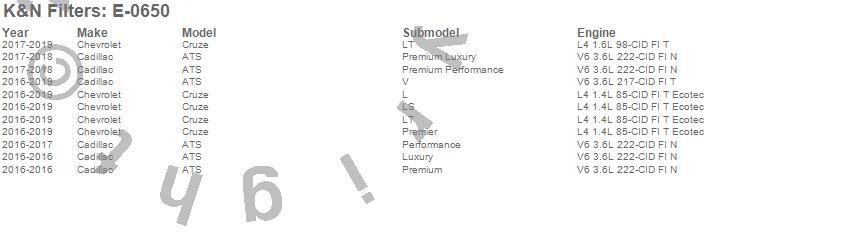 Below is an abbreviated list of applications for the Air Filter.ATS, Cruze, Cadillac, Chevrolet, 2019, 2018, 2017, 2016