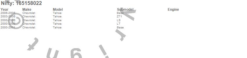 Below is an abbreviated list of applications for the Pro-Line Replacement Carpet.Tahoe, Chevrolet, 2006, 2005, 2004, 2003, 2002, 2001, 2000