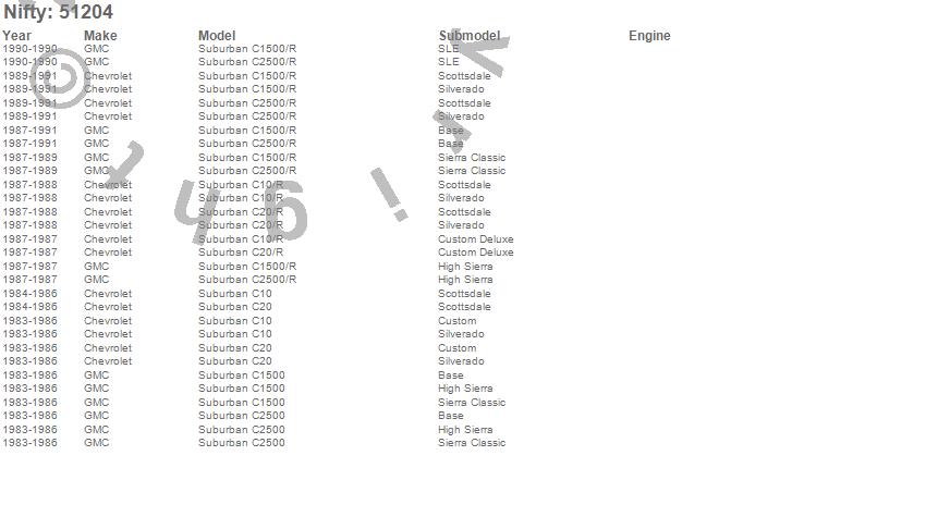 Below is an abbreviated list of applications for the Pro-Line Replacement Carpet.C10 Suburban, C1500 Suburban, C20 Suburban, C2500 Suburban, R10 Suburban, R1500 Suburban, R20 Suburban, R2500 Suburban, Chevrolet, GMC, 1991, 1990, 1989, 1988, 1987, 1986, 1985, 1984, 1983