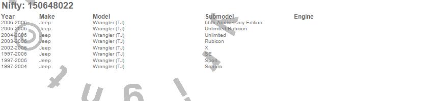 Below is an abbreviated list of applications for the Pro-Line Replacement Carpet.Wrangler (LJ), Wrangler (TJ), Jeep, 2006, 2005, 2004, 2003, 2002, 2001, 2000, 1999, 1998, 1997