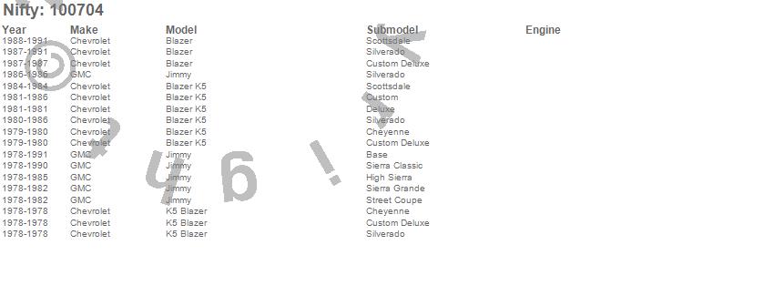 Below is an abbreviated list of applications for the Pro-Line Replacement Carpet.Blazer, Blazer K5, Jimmy, K5 Blazer, Chevrolet, GMC, 1991, 1990, 1989, 1988, 1987, 1986, 1985, 1984, 1983, 1982, 1981, 1980, 1979, 1978