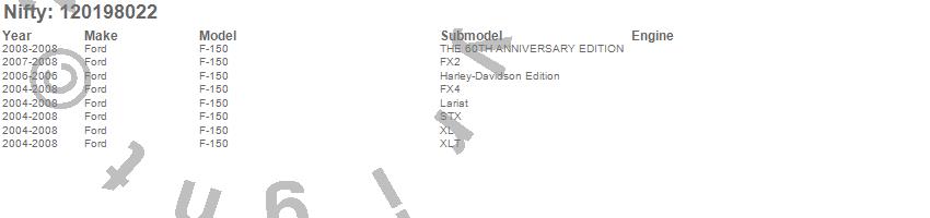 Below is an abbreviated list of applications for the Pro-Line Replacement Carpet.F-150, Ford, 2008, 2007, 2006, 2005, 2004