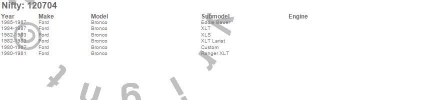 Below is an abbreviated list of applications for the Pro-Line Replacement Carpet.Bronco, Ford, 1987, 1986, 1985, 1984, 1983, 1982, 1981, 1980