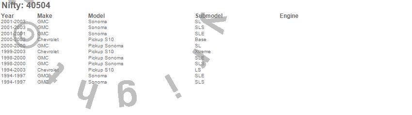 Below is an abbreviated list of applications for the Pro-Line Replacement Carpet.S10 Pickup, Sonoma, Chevrolet, GMC, 2003, 2002, 2001, 2000, 1999, 1998, 1997, 1996, 1995, 1994