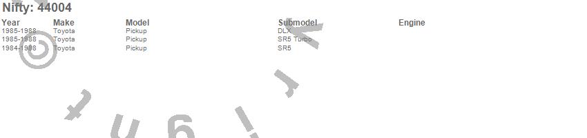 Below is an abbreviated list of applications for the Pro-Line Replacement Carpet.Pickup, Toyota, 1988, 1987, 1986, 1985, 1984