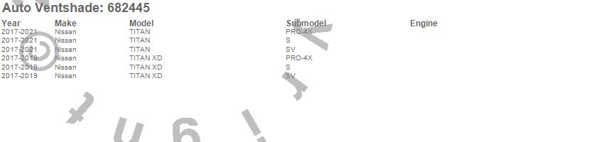 Below is an abbreviated list of applications for the Chrome Ventvisor Deflector 2 pc..TITAN, TITAN XD, Nissan, 2021, 2020, 2019, 2018, 2017
