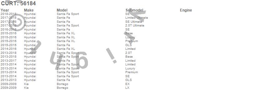 Below is an abbreviated list of applications for the Custom Wiring Harness.Borrego, Santa Fe, Santa Fe Sport, Santa Fe XL, Hyundai, Kia, 2018, 2017, 2016, 2015, 2014, 2013, 2009