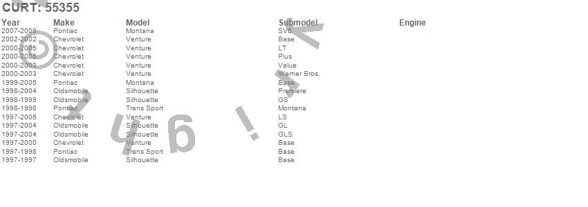 Below is an abbreviated list of applications for the Custom Wiring Harness.Montana, Silhouette, Trans Sport, Venture, Chevrolet, Oldsmobile, Pontiac, 2009, 2008, 2007, 2005, 2004, 2003, 2002, 2001, 2000, 1999, 1998, 1997