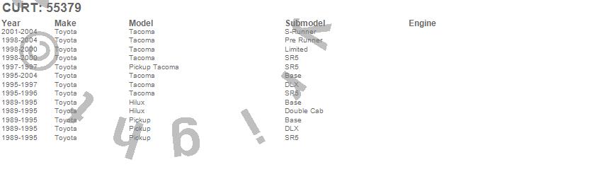 Below is an abbreviated list of applications for the Custom Wiring Harness.Hilux, Pickup, Tacoma, Toyota, 2004, 2003, 2002, 2001, 2000, 1999, 1998, 1997, 1996, 1995, 1994, 1993, 1992, 1991, 1990, 1989