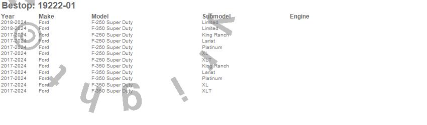 Below is an abbreviated list of applications for the EZ Roll Soft Tonneau Cover.F-250 Super Duty, F-350 Super Duty, Ford, 2025, 2024, 2023, 2022, 2021, 2020, 2019, 2018, 2017