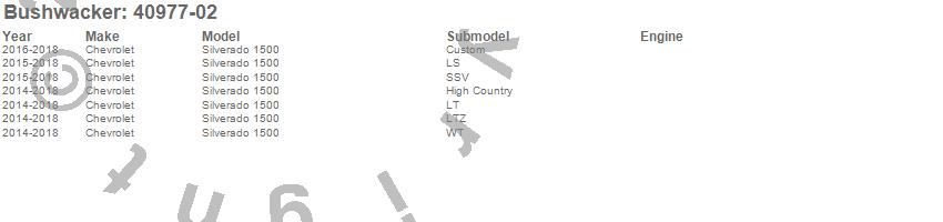 Below is an abbreviated list of applications for the Max Coverage Pocket Style Fender Flares.Silverado 1500, Chevrolet, 2018, 2017, 2016, 2015, 2014