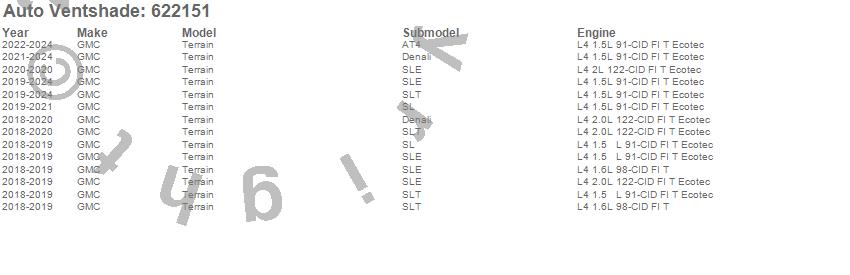 Below is an abbreviated list of applications for the Aeroskin Chrome Hood Protector.Terrain, GMC, 2024, 2023, 2022, 2021, 2020, 2019, 2018