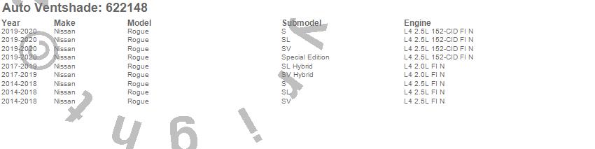Below is an abbreviated list of applications for the Aeroskin Chrome Hood Protector.Rogue, Nissan, 2020, 2019, 2018, 2017, 2016, 2015, 2014