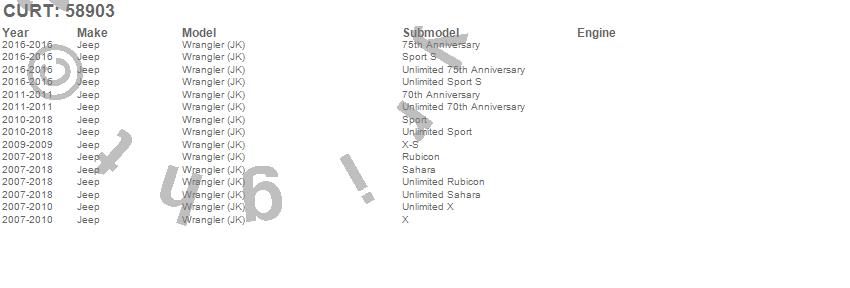 Below is an abbreviated list of applications for the Towed-Vehicle RV Harness.Wrangler (JK), Jeep, 2018, 2017, 2016, 2015, 2014, 2013, 2012, 2011, 2010, 2009, 2008, 2007