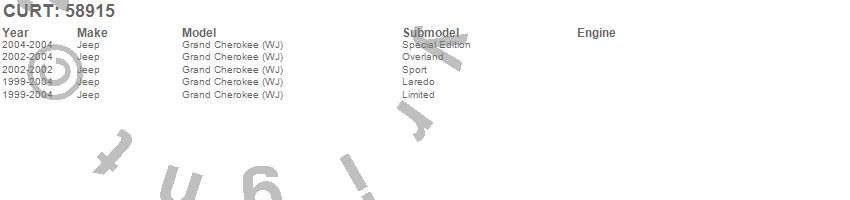 Below is an abbreviated list of applications for the Towed-Vehicle RV Harness.Grand Cherokee (WJ), Jeep, 2004, 2003, 2002, 2001, 2000, 1999