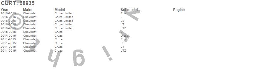 Below is an abbreviated list of applications for the Towed-Vehicle RV Harness.Cruze, Cruze Limited, Chevrolet, 2016, 2015, 2014, 2013, 2012, 2011