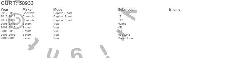 Below is an abbreviated list of applications for the Towed-Vehicle RV Harness.Captiva Sport, Vue, Chevrolet, Saturn, 2012, 2010, 2009, 2008