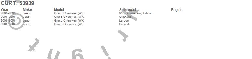 Below is an abbreviated list of applications for the Towed-Vehicle RV Harness.Grand Cherokee (WK), Jeep, 2006, 2005