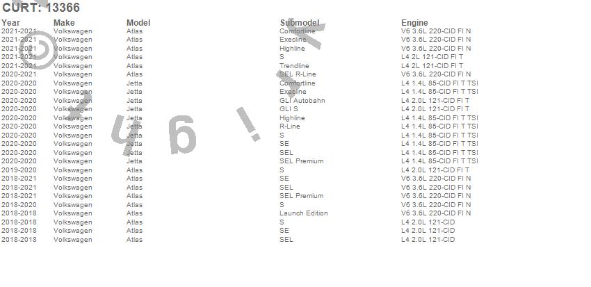 Below is an abbreviated list of applications for the Class III 2 in. Receiver Hitch.Atlas, Volkswagen, 2021, 2020, 2019, 2018