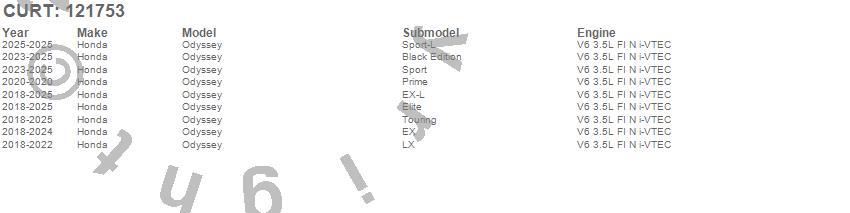Below is an abbreviated list of applications for the Class II 1.25 in. Receiver Hitch.Odyssey, Honda, 2026, 2025, 2024, 2023, 2022, 2021, 2020, 2019, 2018