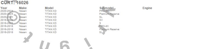 Brand: CURTPart Number: 16026Fifth Wheel Trailer Hitch Mount Leg Type: Compatible w/Curt 5th Wheel Heads Up to 20000lbs.UPC: 612314160266