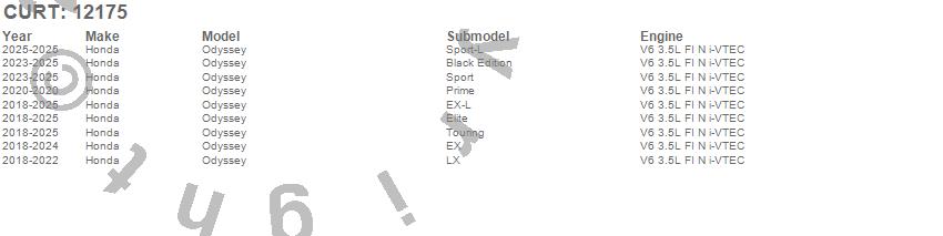 Below is an abbreviated list of applications for the Class II 1.25 in. Receiver Hitch.Odyssey, Honda, 2026, 2025, 2024, 2023, 2022, 2021, 2020, 2019, 2018