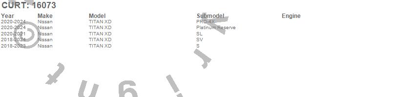 Brand: CURTPart Number: 16073Fifth Wheel Trailer Hitch Type: 16000 lbs. Capacity - 4000 lbs. Vertical Load - Incl. Nissan Titan XD Puck System LegsUPC: 612314038565