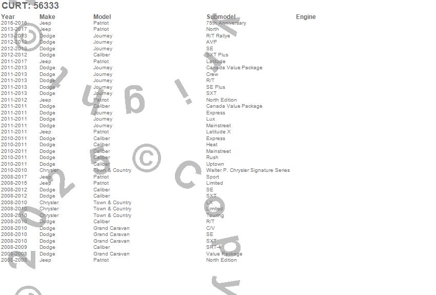 Below is an abbreviated list of applications for the Custom Wiring Harness.Caliber, Grand Caravan, Journey, Patriot, Town & Country, Chrysler, Dodge, Jeep, 2017, 2016, 2015, 2014, 2013, 2012, 2011, 2010, 2009, 2008