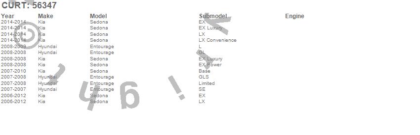 Below is an abbreviated list of applications for the Custom Wiring Harness.Entourage, Sedona, Hyundai, Kia, 2014, 2012, 2011, 2010, 2009, 2008, 2007, 2006