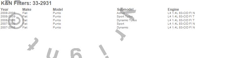 Below is an abbreviated list of applications for the Air Filter.Punto, Fiat, 2009, 2008, 2007
