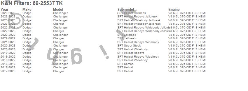 Below is an abbreviated list of applications for the Typhoon Cold Air Induction Kit.Challenger, Charger, Dodge, 2019, 2018, 2017