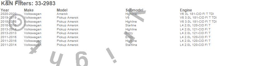 Below is an abbreviated list of applications for the Air Filter.Amarok, Volkswagen, 2019, 2018, 2016, 2015, 2014, 2013, 2012, 2011