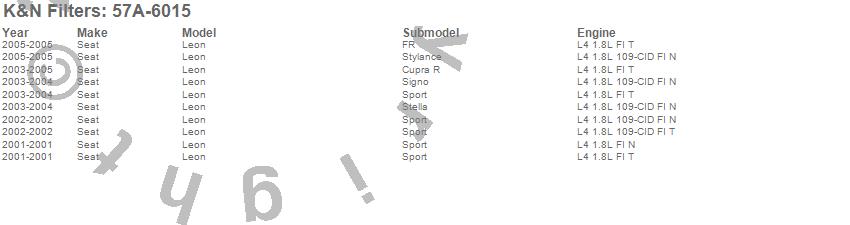 Below is an abbreviated list of applications for the Apollo Cold Air Intake System.Leon, Seat, 2005, 2004, 2003, 2002, 2001