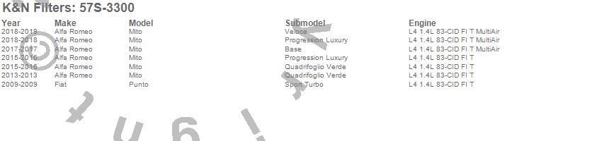 Below is an abbreviated list of applications for the Performance Induction Kit.Mito, Punto, Alfa Romeo, Fiat, 2019, 2018, 2017, 2016, 2015, 2013, 2009