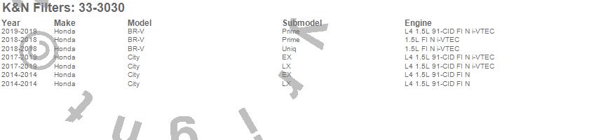 Below is an abbreviated list of applications for the Air Filter.City, Honda, 2019, 2018, 2017, 2014