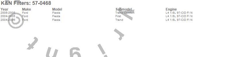 Brand: K&N FiltersPart Number: 57-0468Air Intake Kit Type: Fits 02-08 Ford Fiesta V/03-07 Mazda 2 - Incl. Red Air Filter/Tubing/Adaptors/HardwareUPC: 024844099518